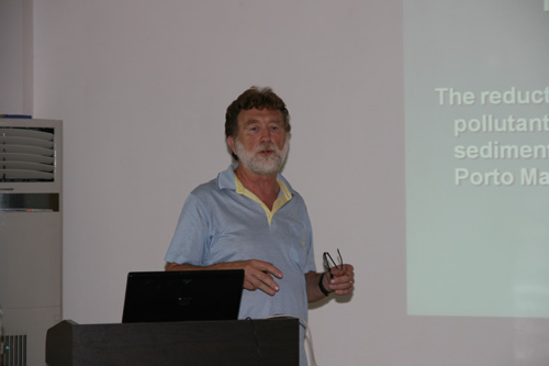 22日下午,三位意大利专家先后做了三场有关海岸带研究的报告。luigi tosi博士介绍了威尼斯地区地面沉陷和海水入侵的研究(soil and subsoil dynamics processes in venice coastal area——land subsidence and salt water intrusion);maurizio bonardi博士介绍了有关海水生态系统环境修复有关技术的研究(environmental recovery of continental and coastal area water ecosystems——advanced technologies for the environmental recovery of water ecosystems.);luca baradello博士介绍了高分辨率地震技术在近岸浅水调查的研究以及地波雷达在地层调查中的应用(high resolution seismic technique in very shallow water and electromagnetic methods for land investigation——subsoil characterization by geophysical surveys)。